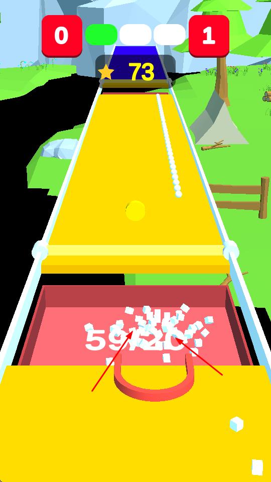 2、每次滚动后,解锁新区域,收集散落在场景中的方块,积累道具数量,提升游戏进度。
