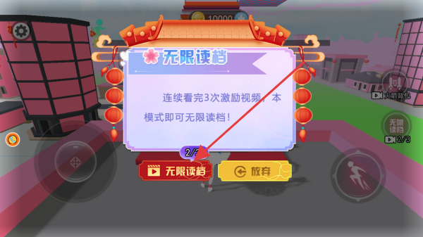 2、游戏过程中,看到无限读档提示,可选择连续看完3次激励视频获取无限读档功能,降低游戏失败成本。