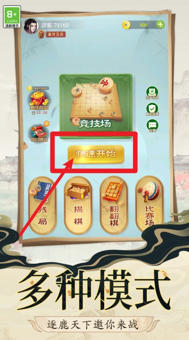 1.快速开始模式:点击快速开始即可进入匹配,无需等待或复杂设置,轻松开启一场象棋智慧对决挑战。