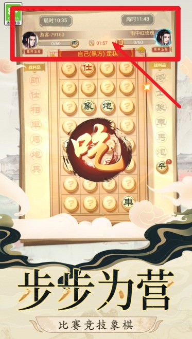 2.对战界面展示:对弈时清楚显示双方头像、用时与积分,便于玩家实时掌握战局变化,提升竞技感与沉浸感。
