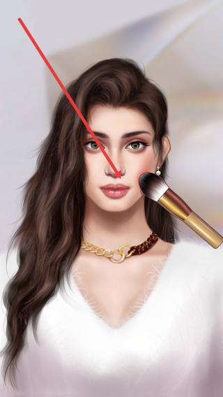 2、痘痘清理后,进入化妆环节,跟随红色箭头,用化妆刷在指定脸部区域操作,打造美妆。