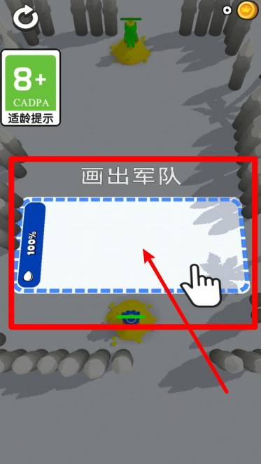 1.绘制界面提示玩家画出军队,操作简单直观,只需滑动即可召唤战士展开攻势,轻松掌控全局。