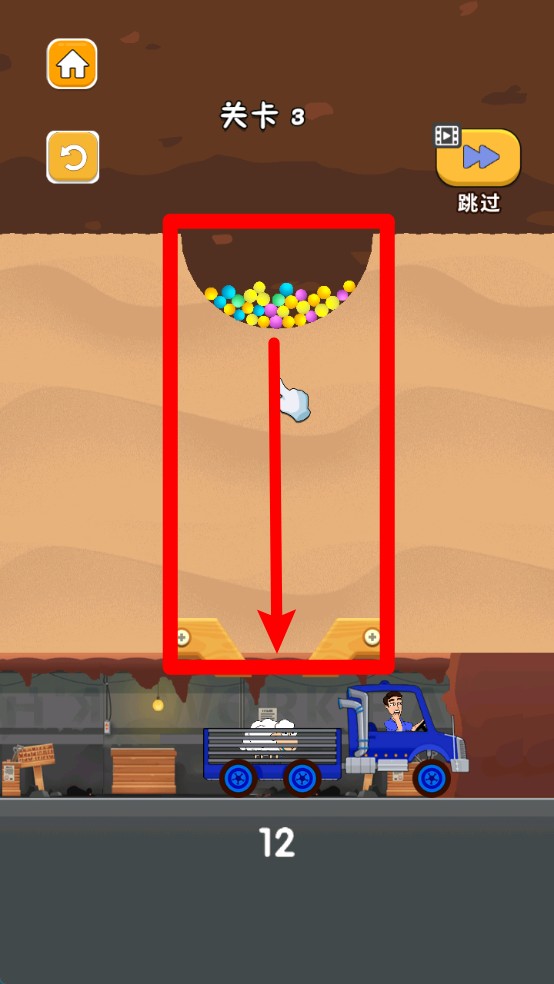 2.滑动画面让彩球顺利落入货车,只需掌握正确时机与路径判断,就能完成运输挑战,体验轻松有趣的解谜过程。