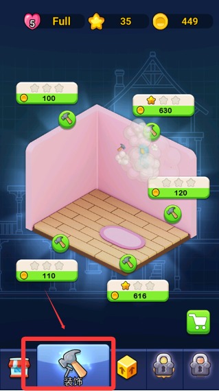 4、回到主页在装饰这里可以对家具进行购买,建设自己的小屋。
