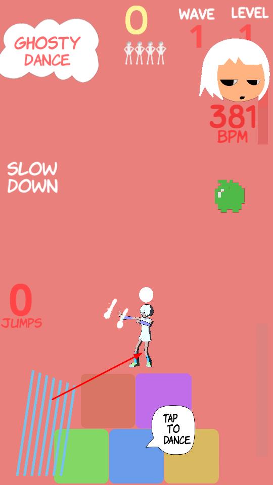 2、玩家在游戏关卡看到TAP TO DANCE提示时,按节奏点击对应方块,操控角色跳舞。