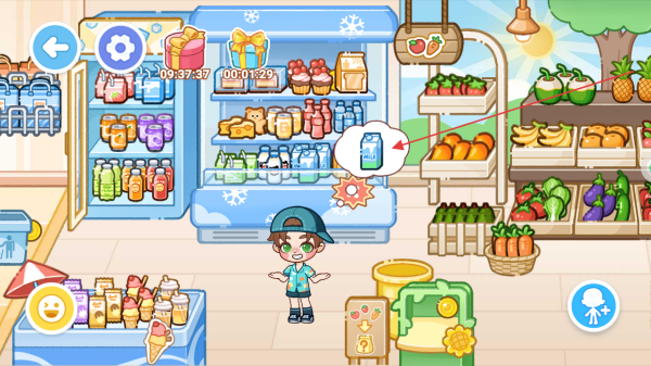 3、观察顾客需求气泡,如MILK,快速找到对应货架商品,在规定时间内完成交易获取奖励。