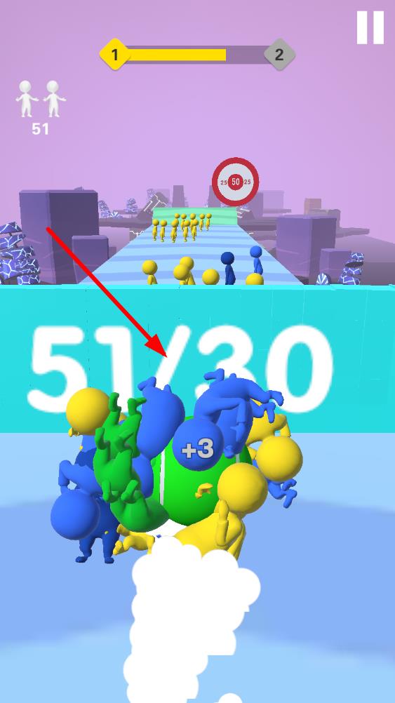 3、道具与关卡挑战:使用道具提升自身属性如速度、粘性范围,助力海量关卡中突破高分,随着关卡推进,赛道复杂度与小人密度增加,保持挑战的新鲜感。