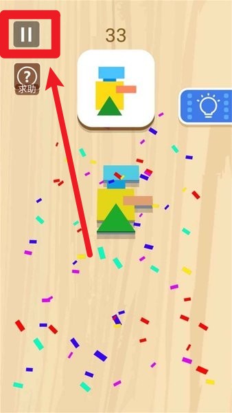 2.暂停与通关动画:画面左上角的暂停键可随时中断游戏,匹配成功后则会自动播放彩带动画,表示通关成功。