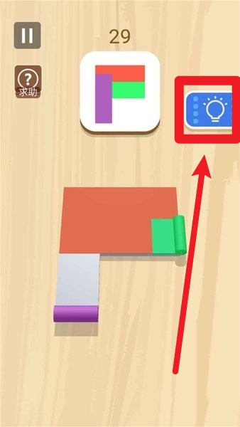 3.提示按键功能:右侧的灯泡图示按钮为提示功能,点击即可获得拼图参考方向,适合在卡关时使用快速破关。