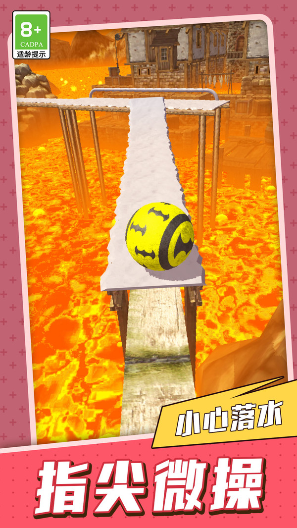 3.节奏紧张刺激:球体在狭窄轨道上高速滚动,稍有不慎就会坠落,紧张氛围贯穿始终,时刻保持肾上腺素飙升状态。