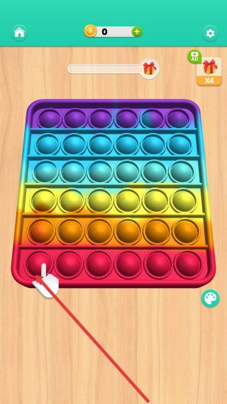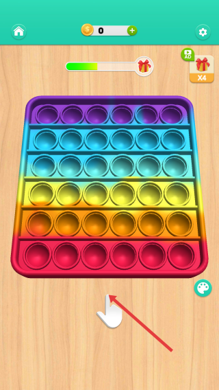 1、开启并进入游戏,点红色泡泡区,依次按彩虹泡泡,能引发回弹得到解压的过程,填满进度条。