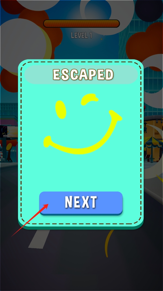 2、成功逃脱后,点击NEXT,进入Level2,面对更强警察,灵活走位,利用环境,点击继续。