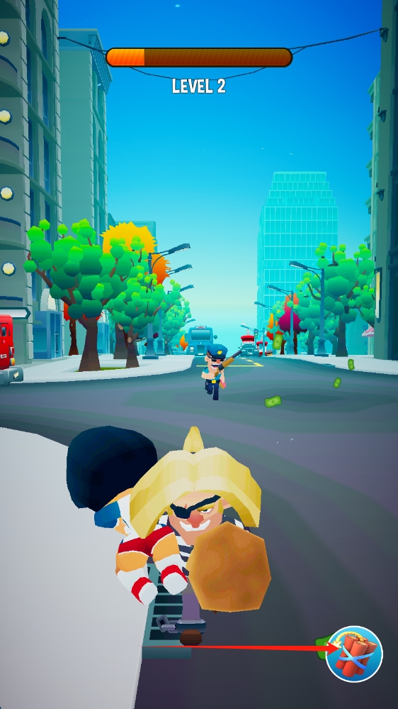 3、Level2中,合理使用道具如炸药干扰警察,保持移动,完成关卡,解锁新挑战,点击使用道具。