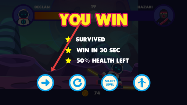 3、在击败敌人胜利后,可以根据点击左侧箭头按钮,继续推进游戏流程,开启新战斗关卡。