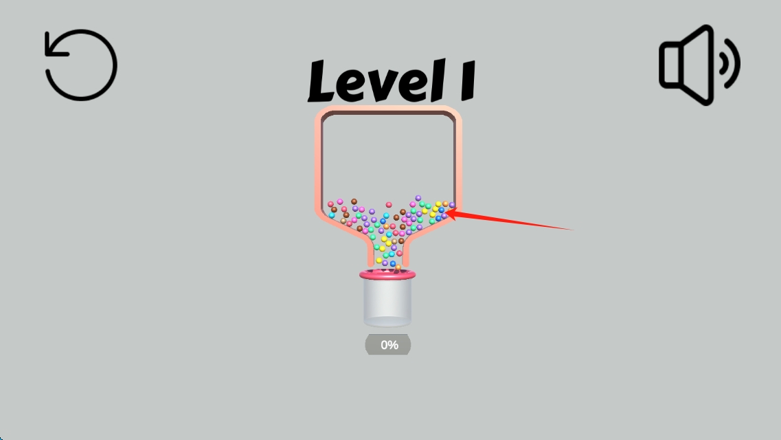 1、进入Level1,点击屏幕释放彩珠,让彩珠沿轨道落入容器,开始填充挑战,滑动开始游戏。
