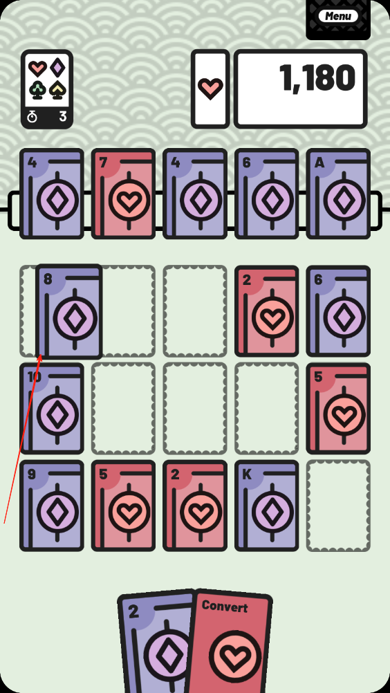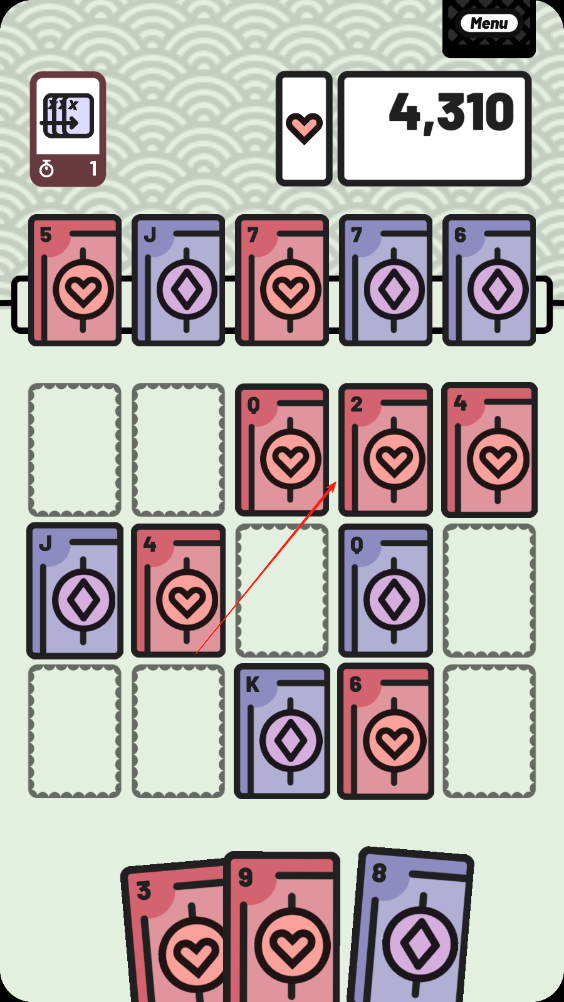 2、连锁消除策略:留意纸牌消除后的位置变化,尝试构建能引发连锁反应的布局,如消除一组纸牌后让其他相同颜色的纸牌自动相邻,减少手动移动次数。