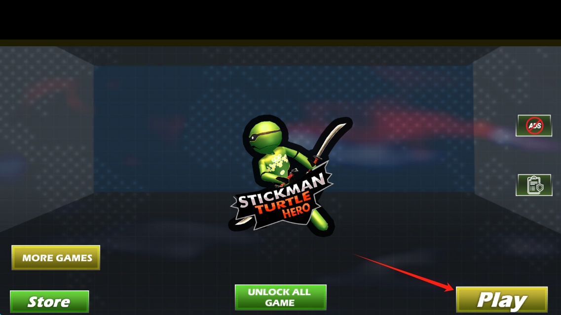 1、点击Play,进入Stickman-Turtle-Hero,操控绿色火柴人,在城市执行任务,点击开始游戏。