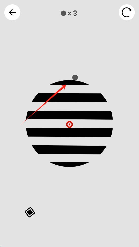 2、关卡内,滑动屏幕控制小球发射角度与力度,让小球穿过条纹障碍,命中靶心,点击选择关卡。