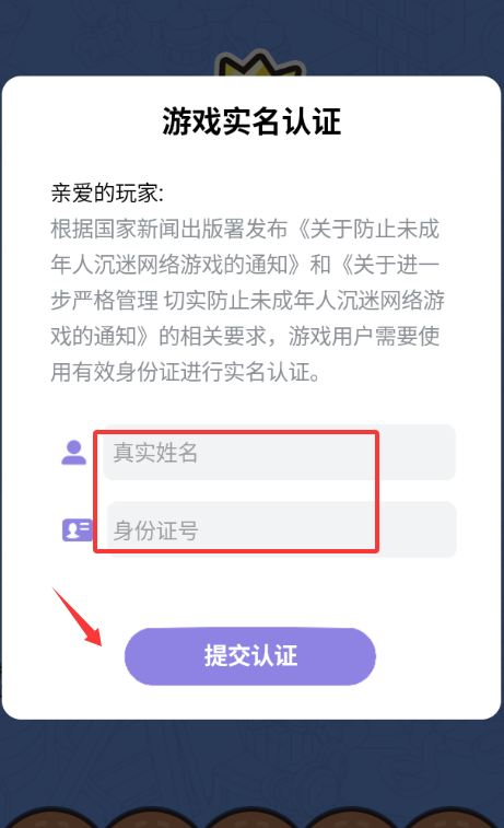 1、填写真实姓名和身份证号码提交认证。
