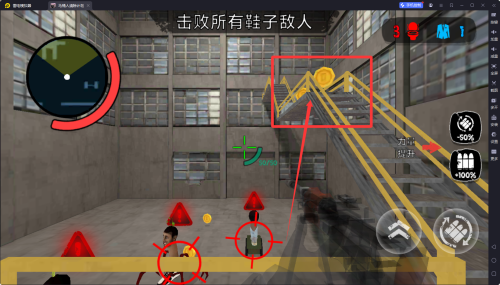 1、玩家通过拖拽屏幕控制角色移动,精准瞄准敌人进行射击,灵活应对各种突发战斗情况,考验玩家的反应速度和操作技巧。
