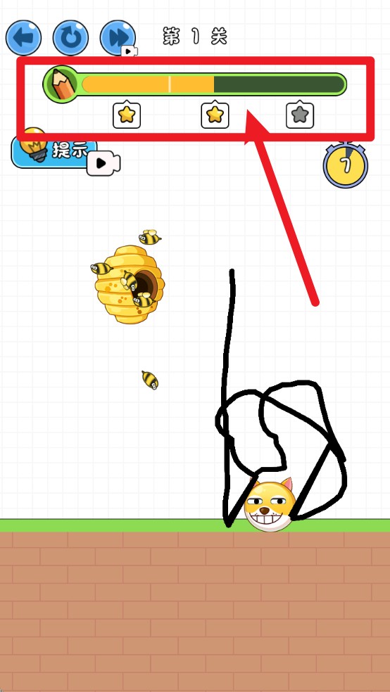 1.魔性画线玩法:通关杠杠的采用自由画线机制,玩家可随心所欲地绘制防线,巧妙阻挡蜜蜂进攻,保护狗蛋安全过关。