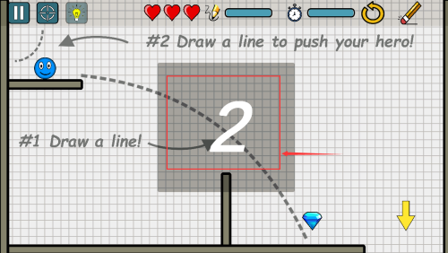1、点击绿色START按钮,开始重力英雄物理绘图冒险游戏。