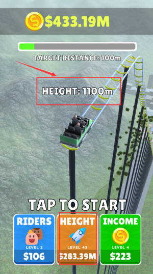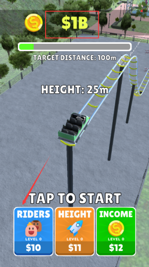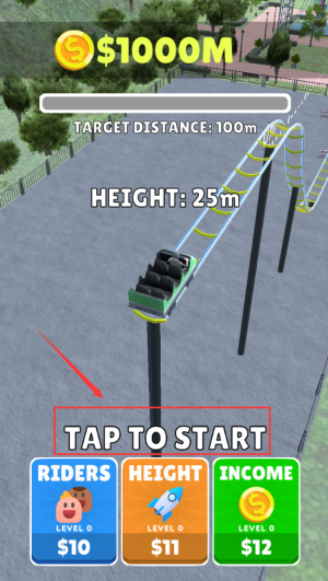 1、点击红框TAP TO START,开始过山车经营游戏。