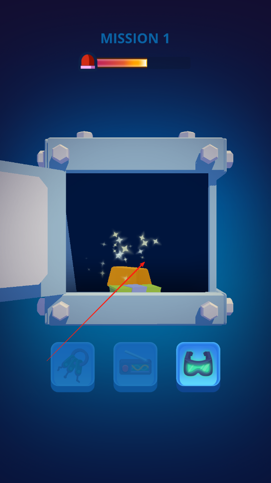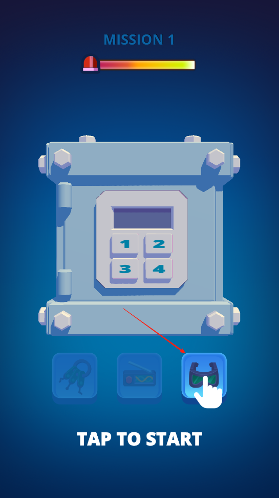 1、观察第一个保险箱的外观和初始线索,熟悉基础操作方式,尝试进行第一次解密尝试,根据提示点击眼镜,可以透视箱子上。