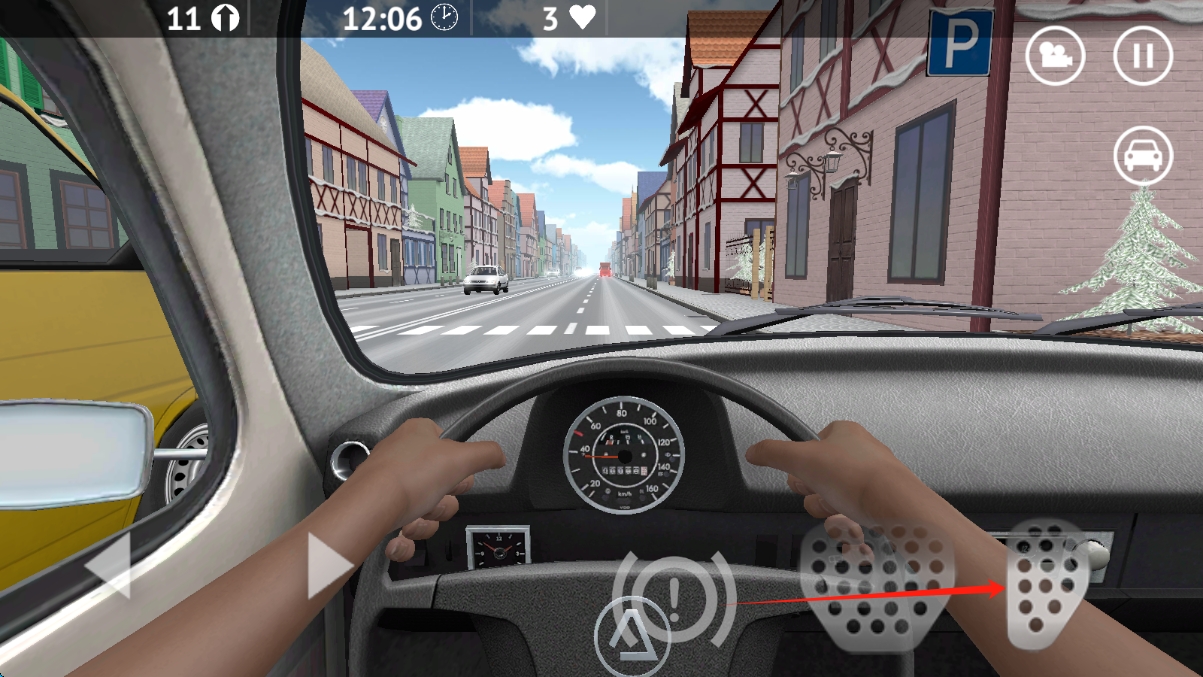 2、行驶时,用右侧油门加速,左侧方向键控转向,注意红绿灯、限速,避让行人和车辆,点击加速。