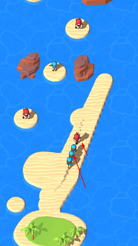 1、指尖画路引导前进:在动动指尖,在海岛上为小人画出一条可行的路径,路径需避开各种障碍物,确保小蓝人能沿着路线顺利移动,朝着基地方向前进。