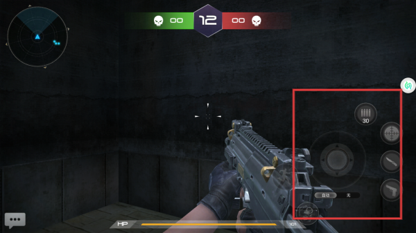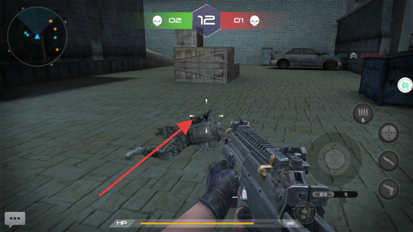 2、进入游戏场景,利用右侧虚拟摇杆控制射击方向,瞄准目标进行射击,完成击杀任务。