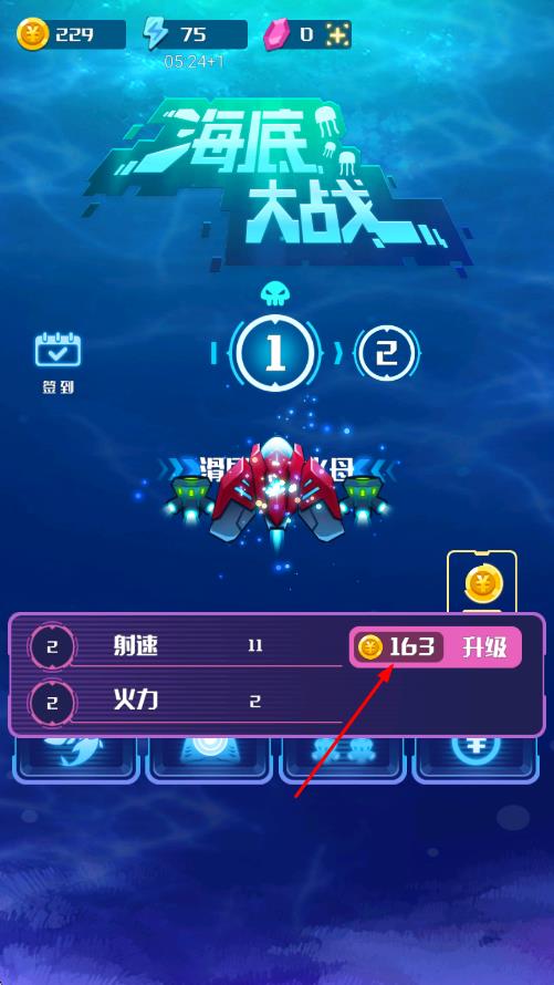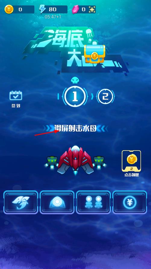 1、进入游戏后选择初始战机,在海底场景中移动操控方向,点击屏幕发射子弹攻击迎面而来的水母。