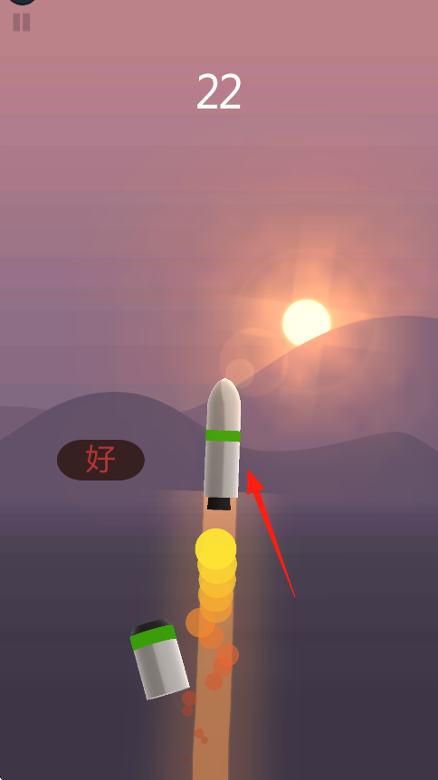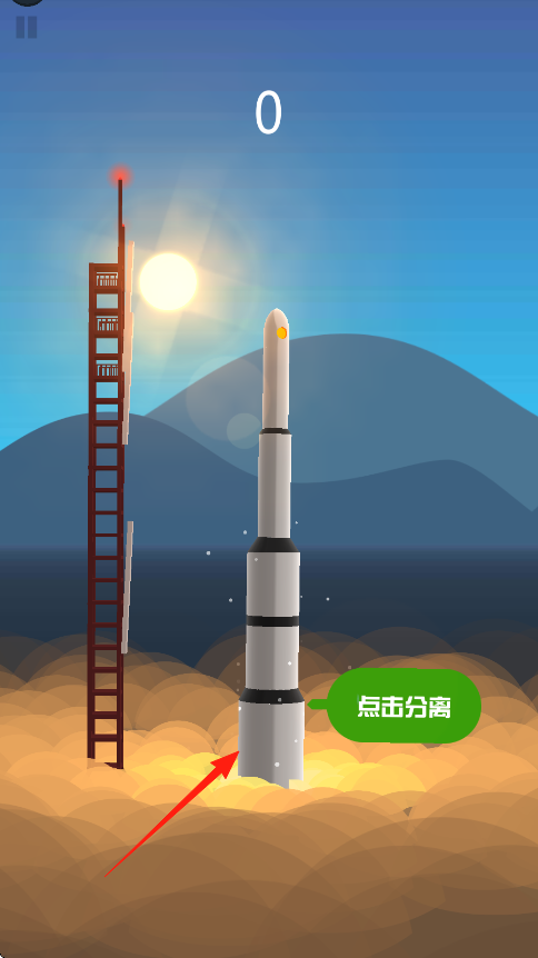 1、点击点击分离,让火箭多节结构底部燃料舱分离,借助推力升空,避开障碍无明显障碍时持续上升。
