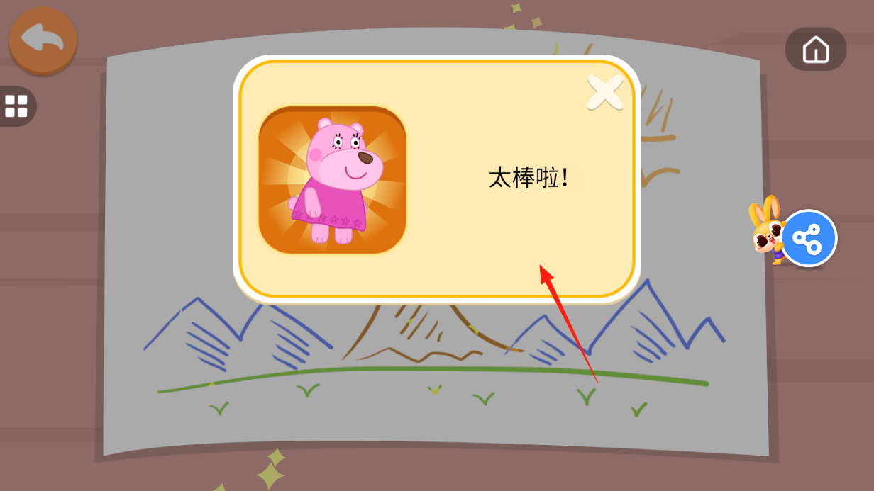 3、完成互动后,弹出角色奖励反馈,查看太棒啦提示,收获正向激励,借助成就反馈机制,强化游戏体验,通过体验,感受目标达成的愉悦,推进后续玩法。