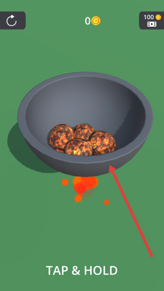 2、进入有铁锅和球状物品的界面,按提示TAP&HOLD,长按屏幕让物品完成相应锻造流程。