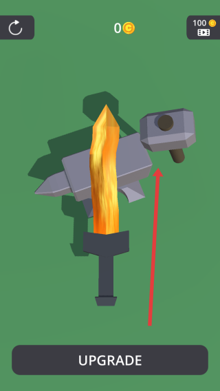 3、在武器界面,箭头指向可升级部位,点击UPGRADE按钮,消耗资源提升武器属性增强实力。