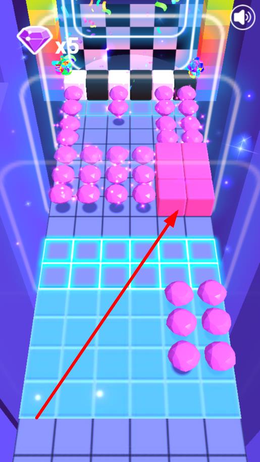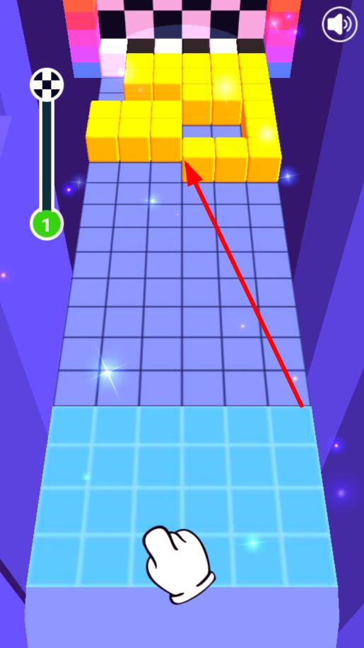 1、进入游戏后,观察前方逐步靠近的砖块排列形状,通过点击或拖动屏幕操控方块,堆叠出与前方相同的方块堆,完成重叠即可过关,开启基础闯关。