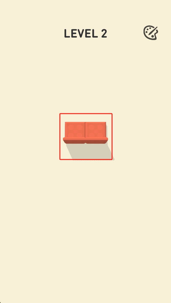 2、Level2时,翻转红色砖块达成折叠效果,结合右上角调色板标识,执行颜色或形态的调整操作以推进关卡。