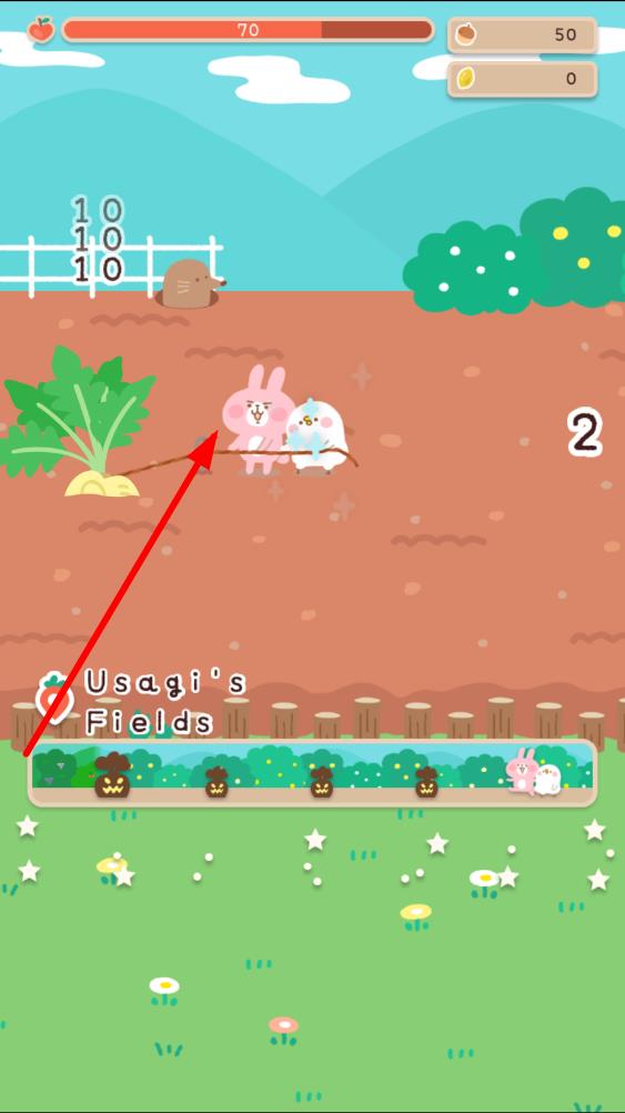 2、不断点击采收蔬菜,招募伙伴协助自动采收,提升Pisuke和Usagi的等级解锁变身效果,增强采收效率。