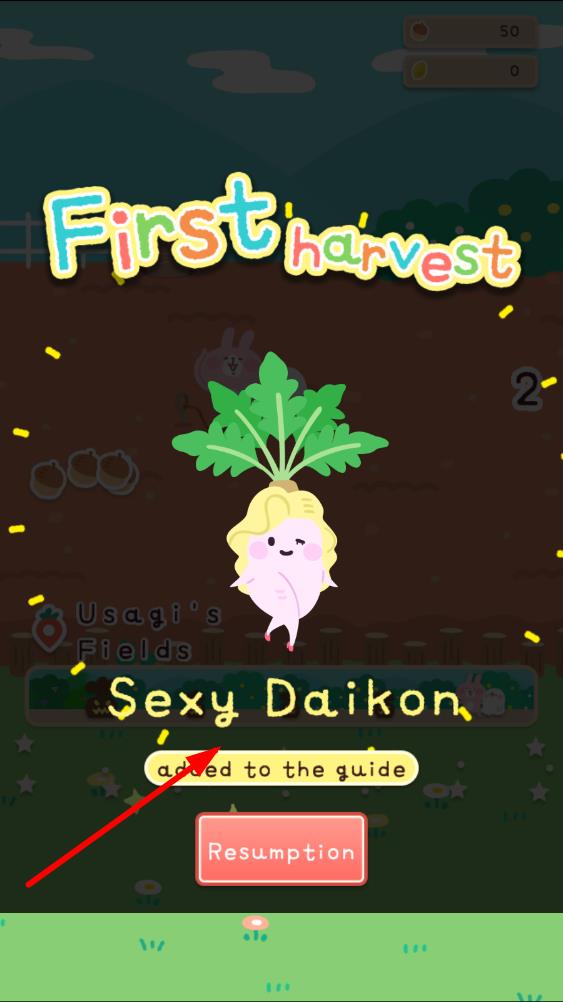 1、跟随剧情了解种植背景,学习点击屏幕采收蔬菜的基础操作,初始关卡中尝试收集成熟的芜菁,熟悉松果兑换机制。
