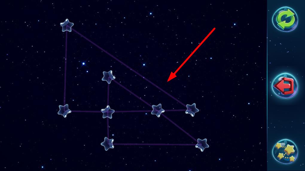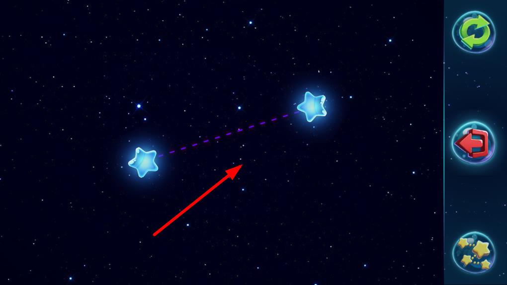 1、进入后查看初始星图的参照样式,熟悉星星的分布位置,尝试用手指将相邻星星按提示连线,掌握连线不能重复的基础规则。
