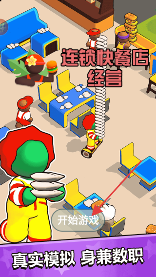 1、游戏启动界面,点击开始游戏按钮,进入连锁快餐店经营游戏环节,开启快餐店经营挑战之旅。