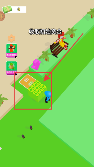2、在游戏初始场景,按提示收取初始资金,获取启动资金,为快餐店经营做准备。