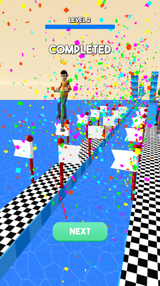 2、道具助力系统:赛道中分布着临时增强弹力、减速障碍等道具,合理拾取使用可帮助突破难点,增加闯关策略性,让每次挑战都有不同的应对方式。