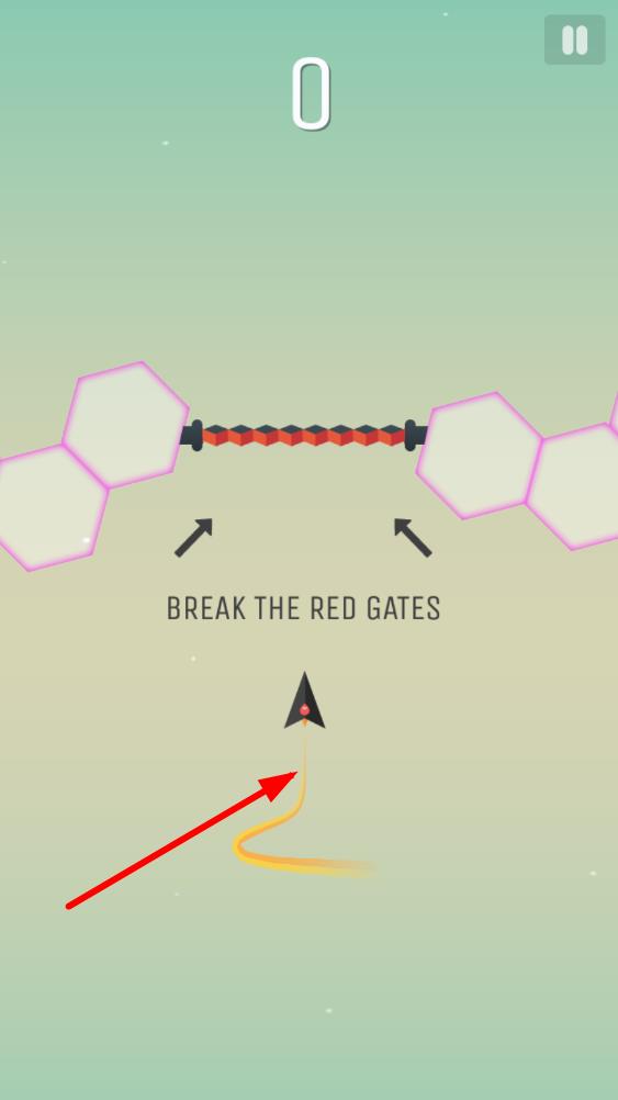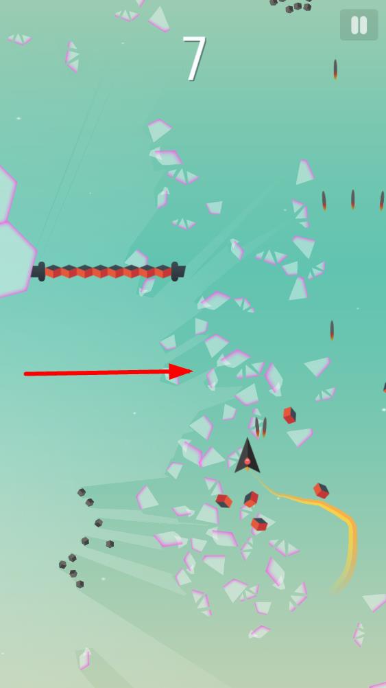 1、三角小飞机自动前行,通过上下左右划动屏幕改变其飞行轨迹,初步熟悉操作手感与障碍物移动规律。