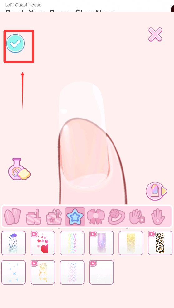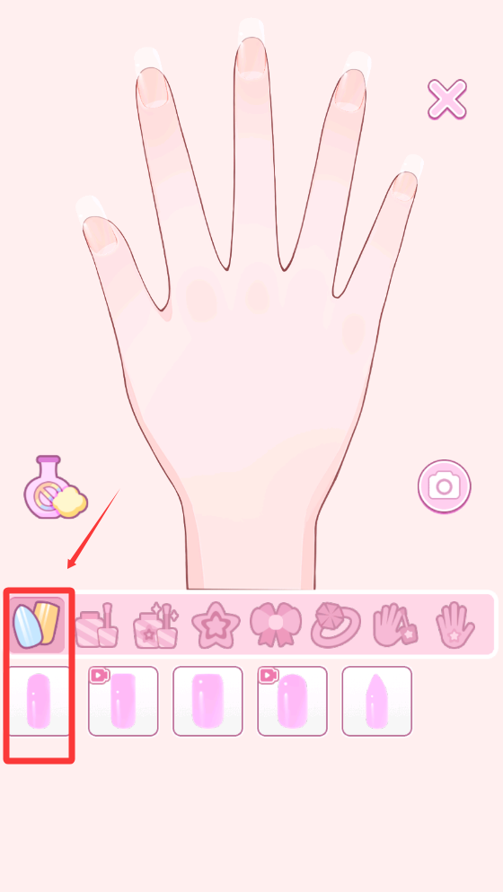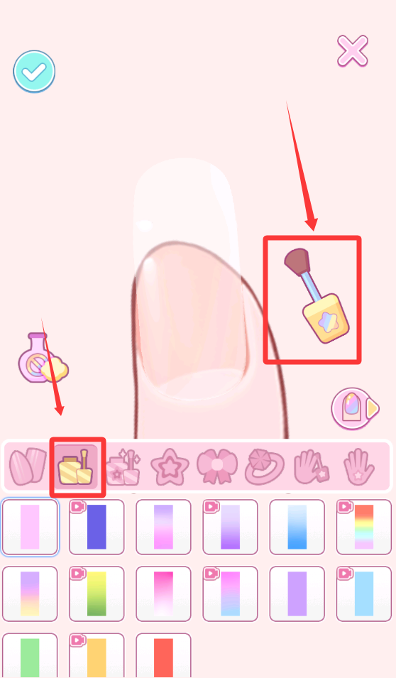 3、再来上个颜色,点击颜色移动涂上指甲,涂完成就点击左边的勾勾按钮。