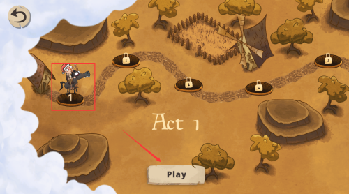 4、点击红框Play按钮,从第一关开始地图冒险。