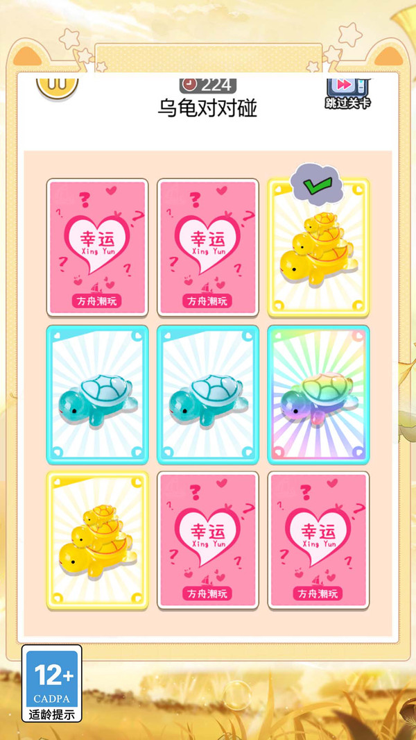 2.萌趣角色设计:以可爱的乌龟为主角,配合清新的画面和活泼的动画效果,让玩家在轻松的氛围中享受消除乐趣。