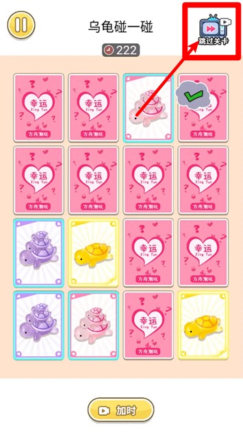 2.过关卡功能:右上角提供跳过关卡的选项,玩家可通过观看广告直接跳过当前困难关卡,快速进入下一轮挑战。