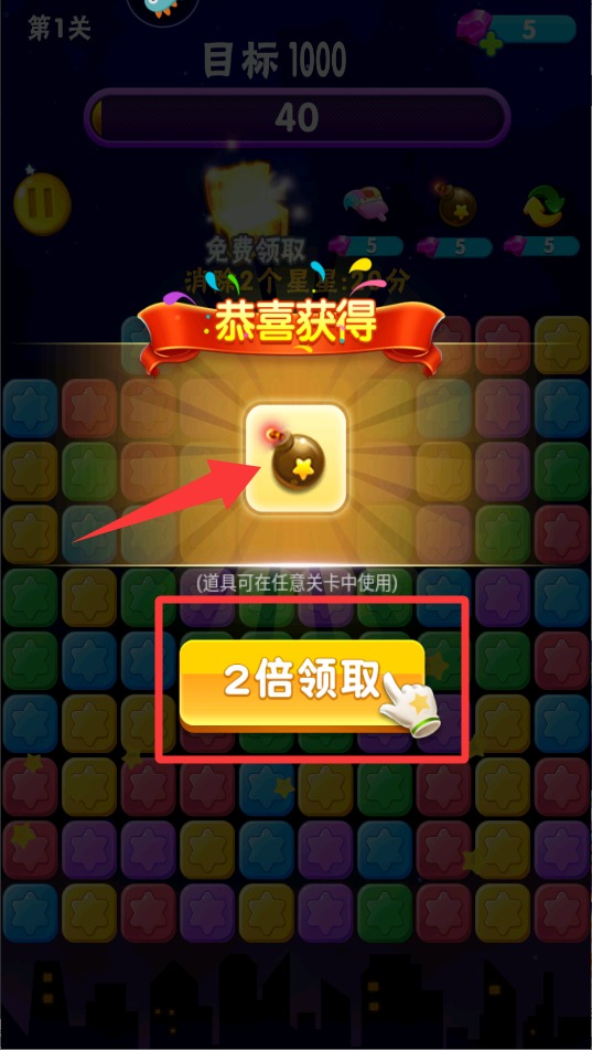 1、游戏开始后仔细观察棋盘,用手指点击两个相邻的相同星星图案,系统会自动消除并产生连锁反应。